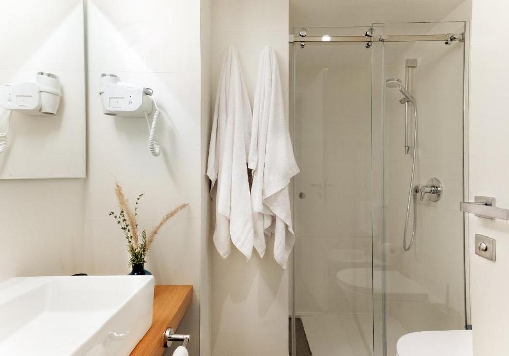 Ванная комната с душем, фен, телефон, телевизор, кондиционер, холодильник (по запросу), большинство номеров с балконом. Фронтальный вид на море – за доплату. Мебелированные в современном стиле. Балконы в форме арки.