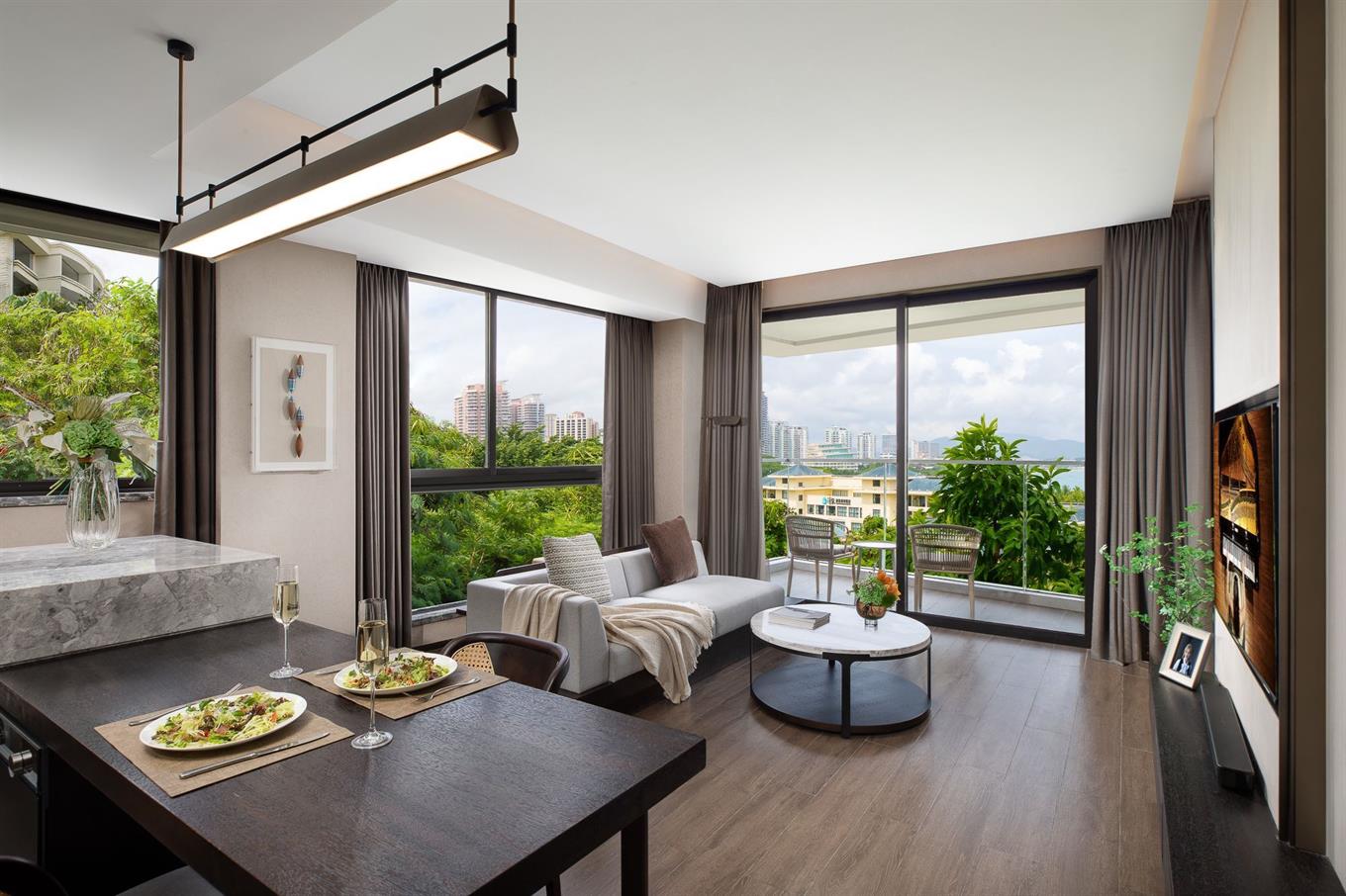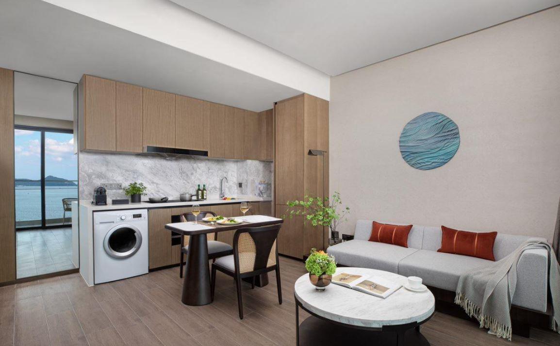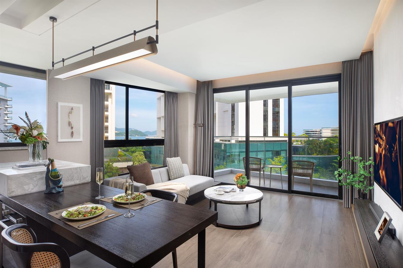 - One Bedroom Premier Sea View (5-15 этаж, вид на море, гостиная и спальня (кровать king size), кухня, макс. 3 чел., 88 м2);