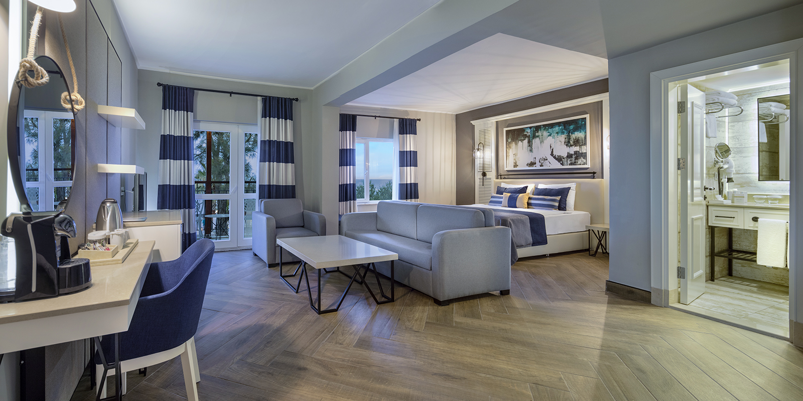 23 Swim Up Suite (вид на сад/бассейн/море, гостиная, 2 спальни с межкомнатной дверью, двуспальная и 2 односпальные кровати, 2 ванные комнаты, терраса с шезлонгами, прямой доступ в бассейн, макс. 4 чел., 70 м2, привилегии);