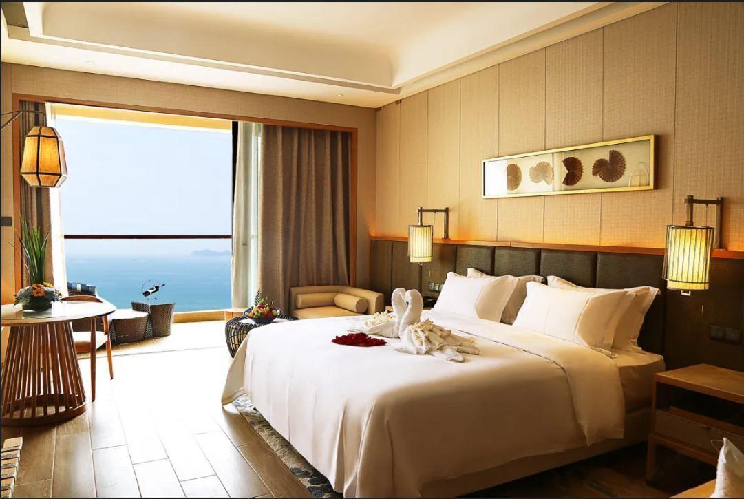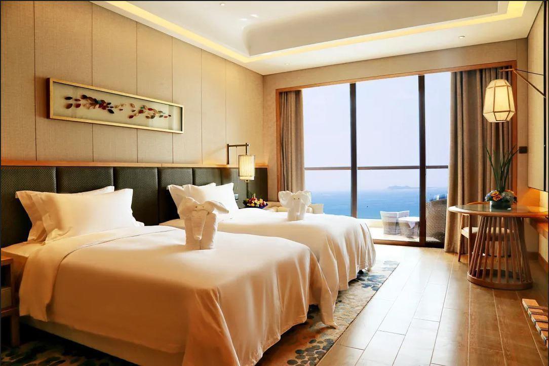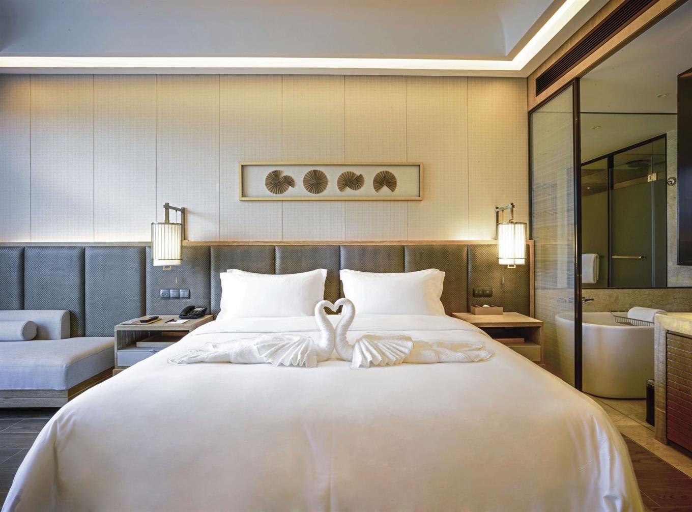 - Deluxe SV (8-10 этажи) — вид на море, кровати king/twin, ванная комната (макс. 2+1 чел., 49 м²);