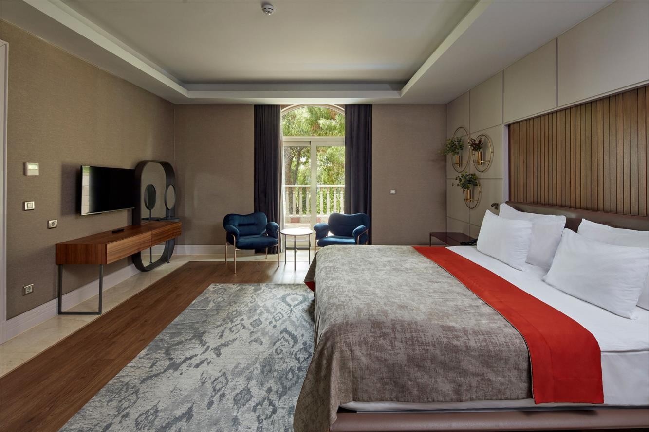 Royal Suite (вид на море, спальня, двуспальная кровать, уголок для отдыха с джакузи, ванная комната с душем, макс. 3+2 чел., 100 м2, привилегии);
