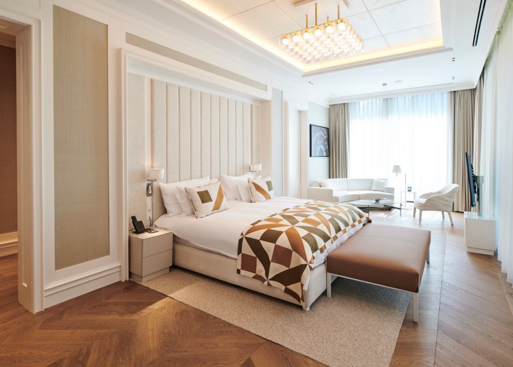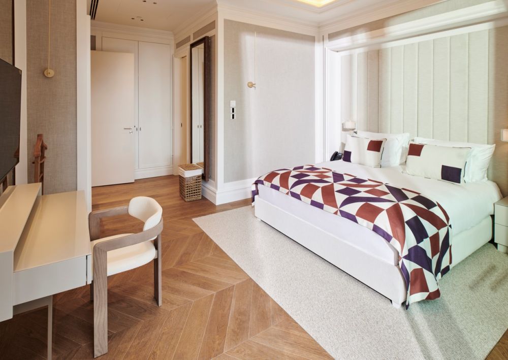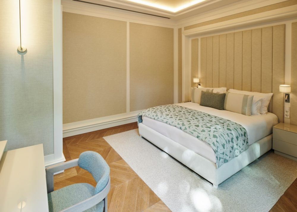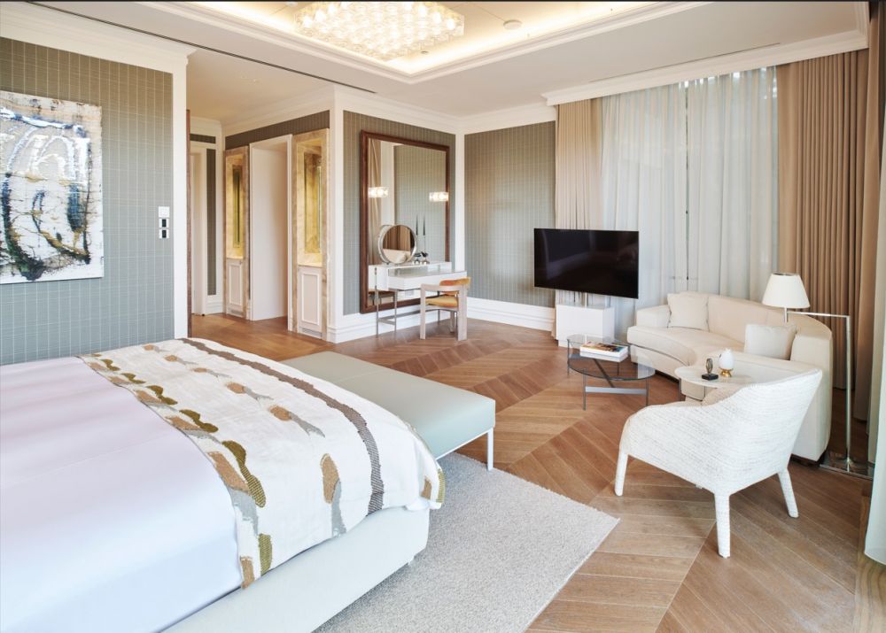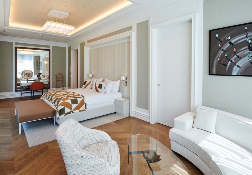 King Suite (вид на море, гостиная, мини-кухня, 2 спальни с дверью (двуспальная и 2 односпальные кровати), 2 ванные комнаты: одна с душем, другая с джакузи и душем, сауна, 3 балкона, макс. 6+2 чел., 220 м2 привилегии).