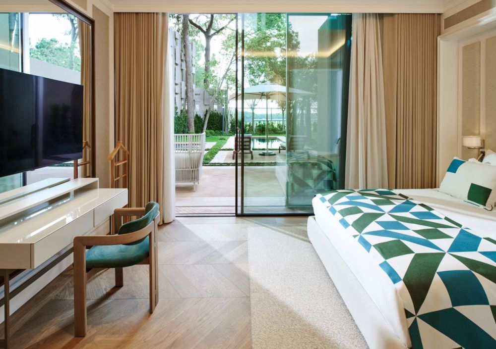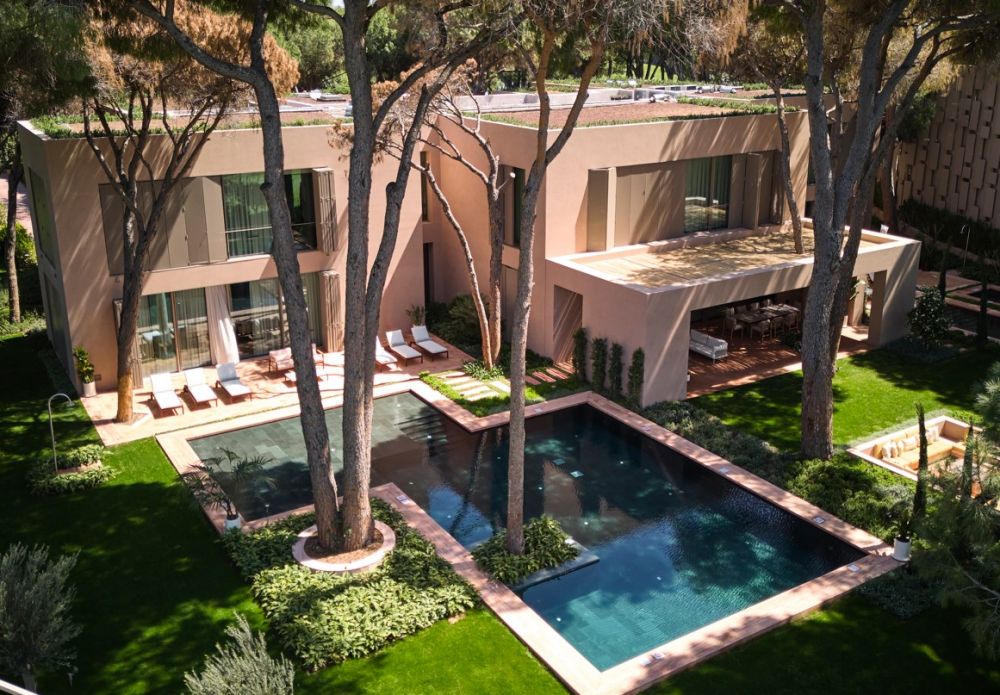 4 двухуровневых Albatross Villa (расположен в Montgomerie Golf Course, гостиная, обеденная зона, 2 спальни (двуспальная и 2 односпальные кровати), 3 ванные комнаты (одна с душем, одна с сауной, одна с джакузи), турецкая баня, терраса, частный открытый бассейн 60 м2 (с подогревом в зимний период), макс. 7+1 чел., 350 м2 (внутри 320 м2), привилегии);