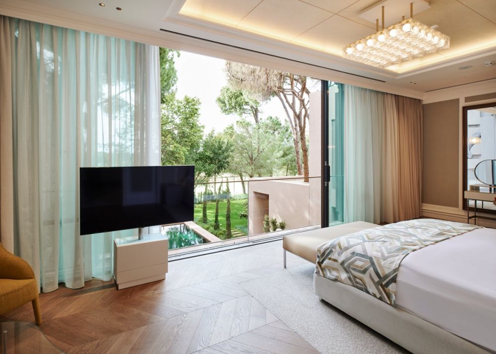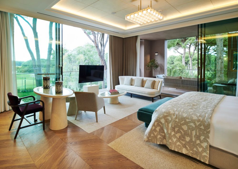 1 двухуровневая Owner Villa (расположен в Montgomerie Golf Course, вилла с лифтом, 2 гостиные, столовая, оборудованная кухня, 9 спален с гардеробными, 9 ванных комнат (восемь с душем, одна с душем, турецкой баней и массажной комнатой), 2 туалета, терраса, частный открытый бассейн (с подогревом в зимний период), макс. 18 чел.+инф, 1400 м2, привилегии).