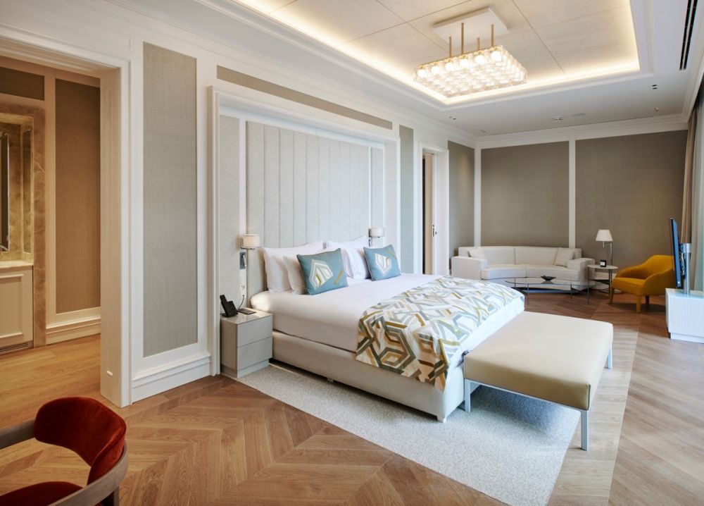 Royal Deluxe Suite (вид на море, 2 спальни с дверью (двуспальные кровати), уголок для отдыха с джакузи, 2 ванные комнаты: одна с душем и джакузи, другая с душем, 2 балкона, макс. 5 или 4+2 чел., 170 м2, привилегии);