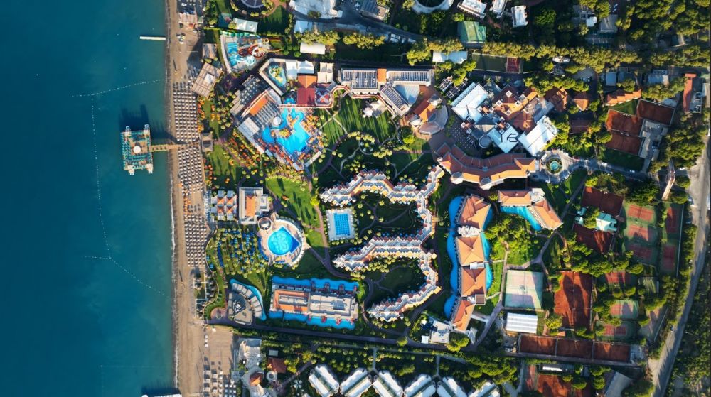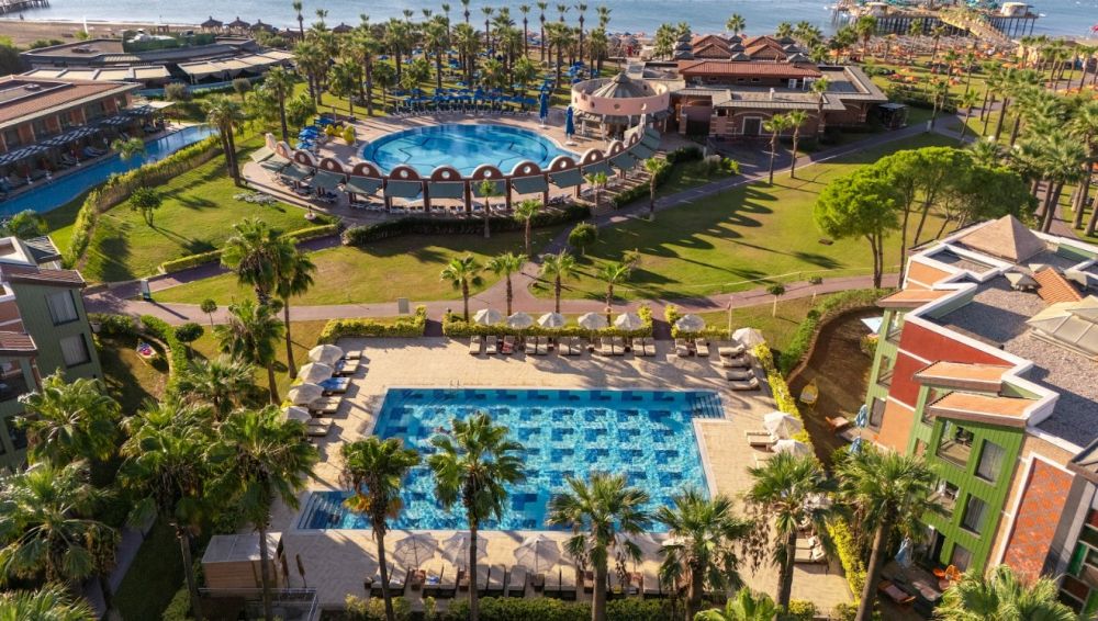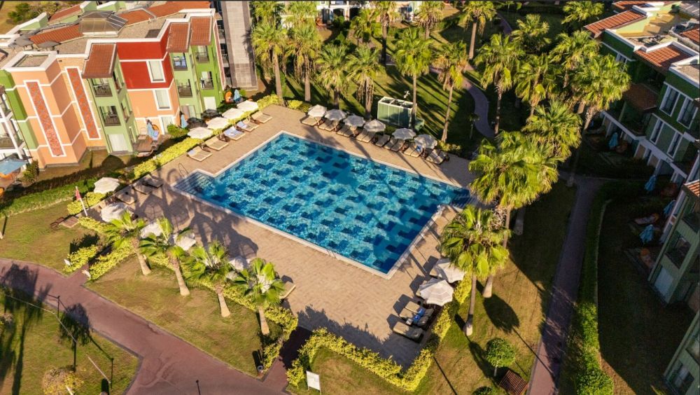 Расположен в 29 км от аэропорта, в 35 км от центра г.Анталья, в 7 км от поселка Кадрие, на берегу моря.
