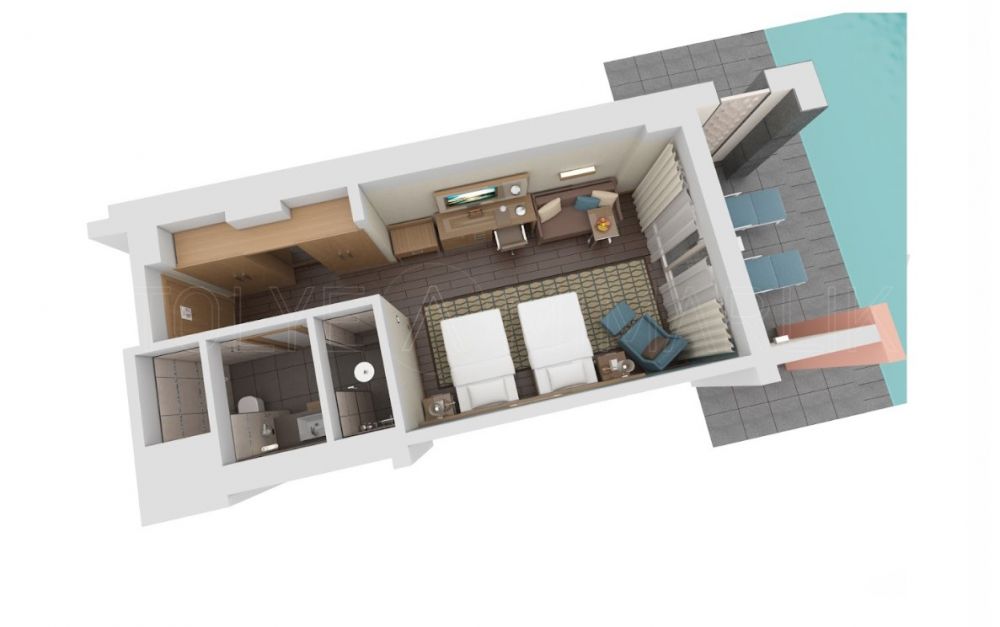 38 standard swim up room (вид на бассейн, расположены на первых этажах с прямым выходом в бассейн, макс. 2+2 чел., 50 м2);