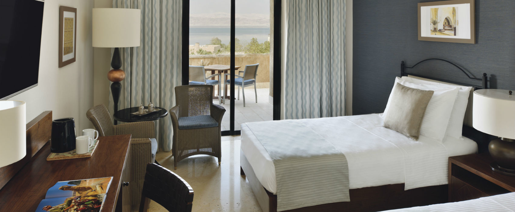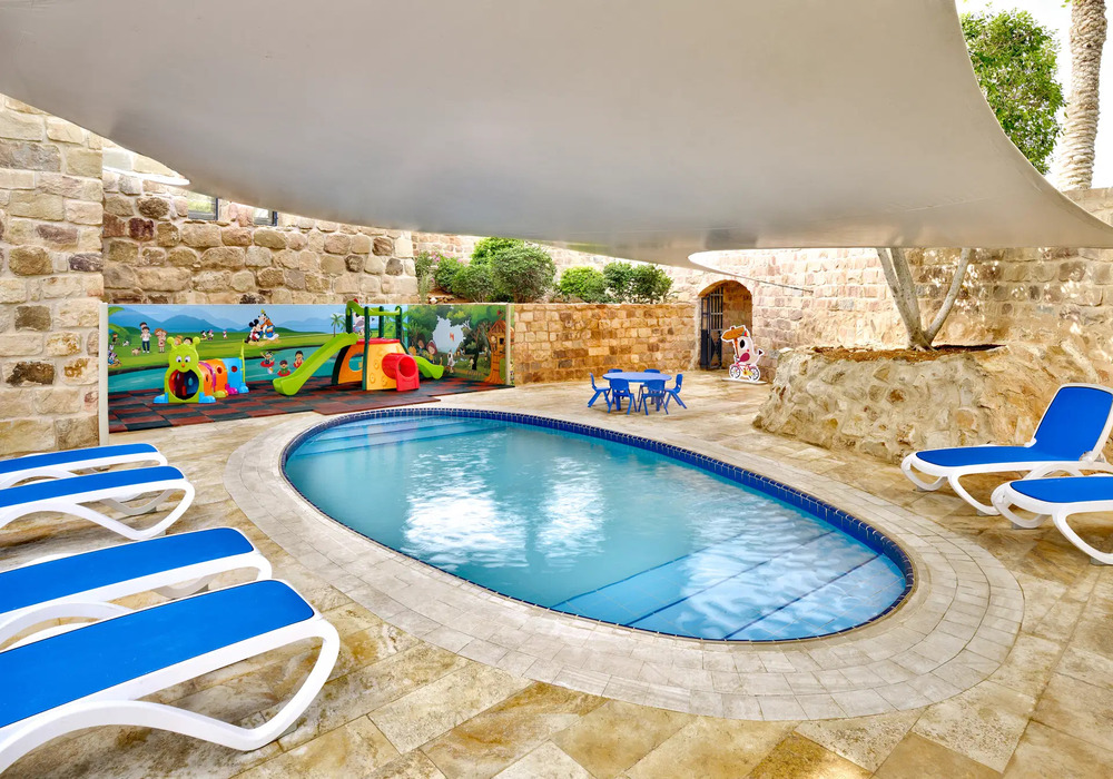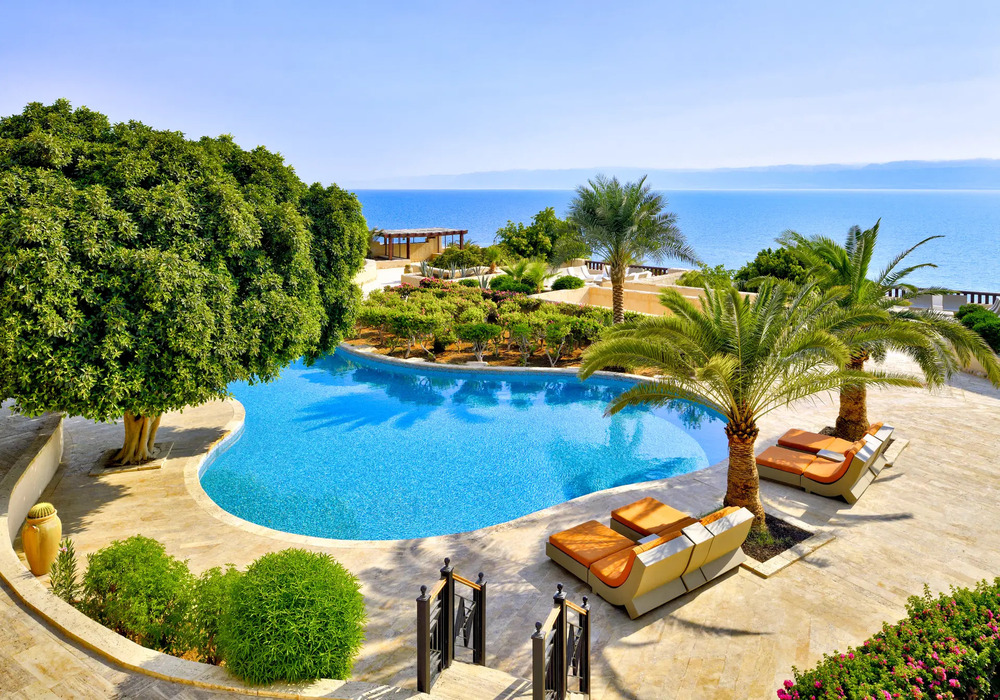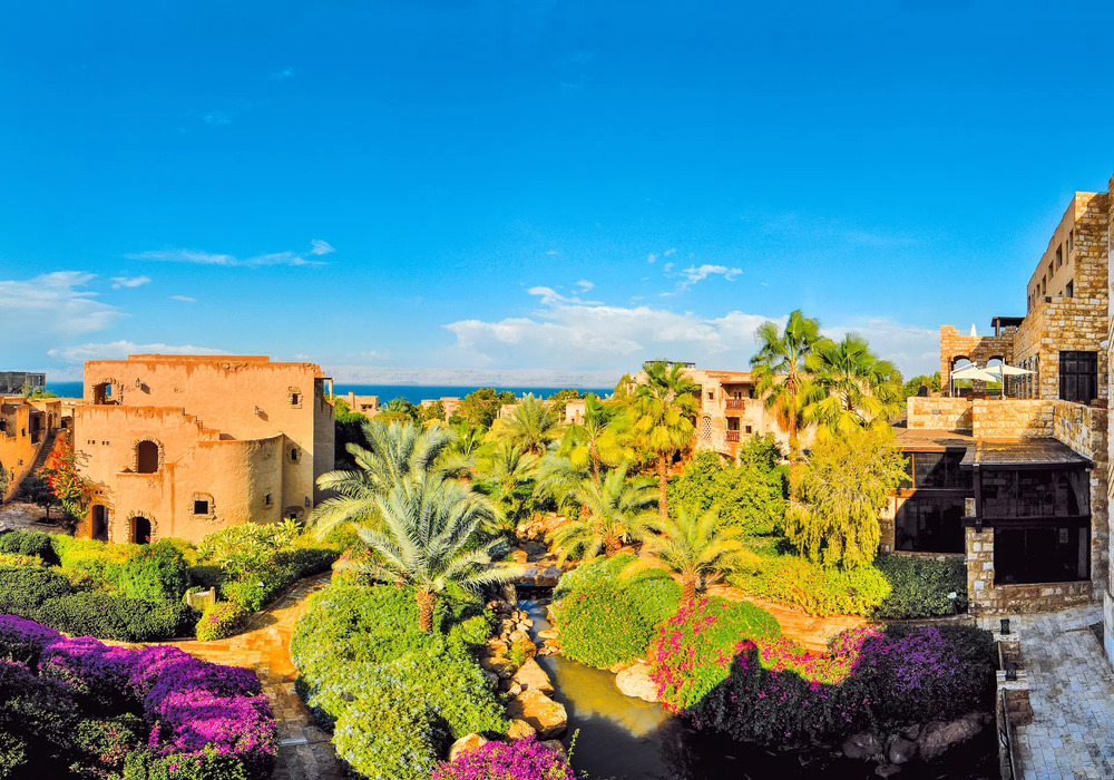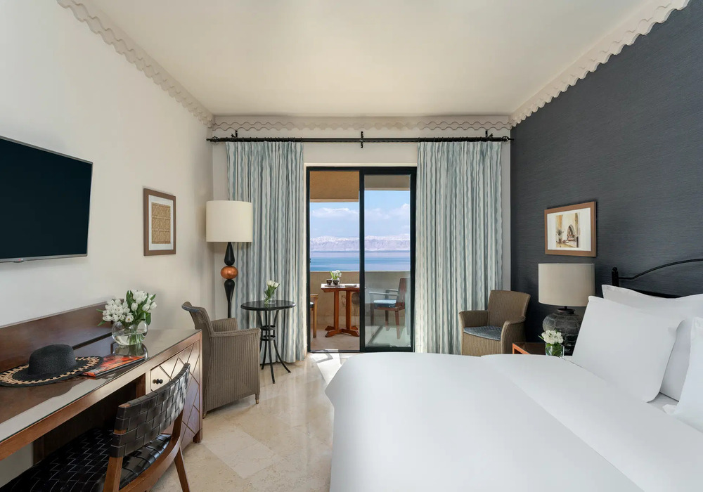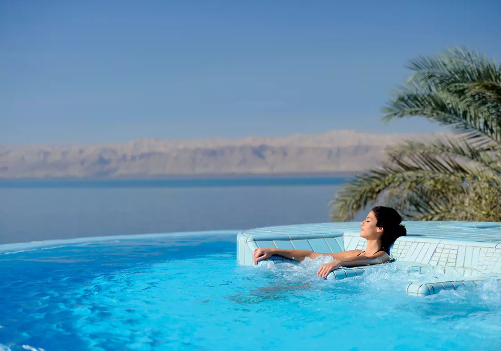 - Первая береговая линия: собственный песчаный пляж с бесплатными шезлонгами, зонтиками и знаменитой лечебной грязью Мертвого моря.