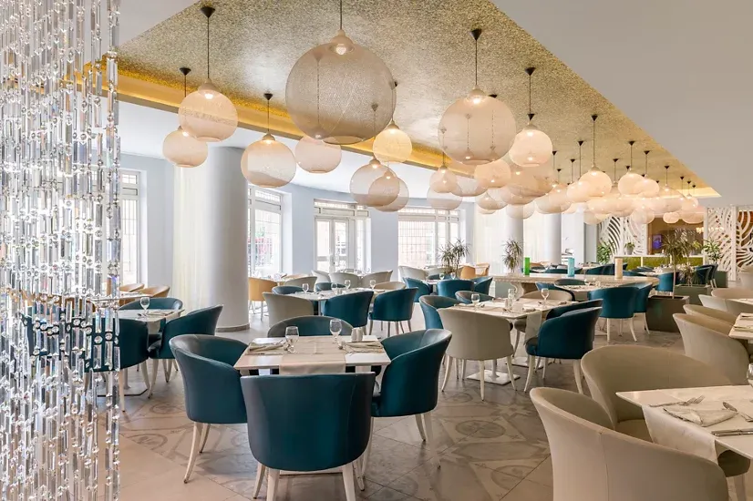 Уникальная архитектура: Главный корпус соединен с пляжной зоной крытым мостом-галереей. Здесь вы найдете сувенирные лавки и салон, а на крыше — панорамный бассейн с уютным кафе.