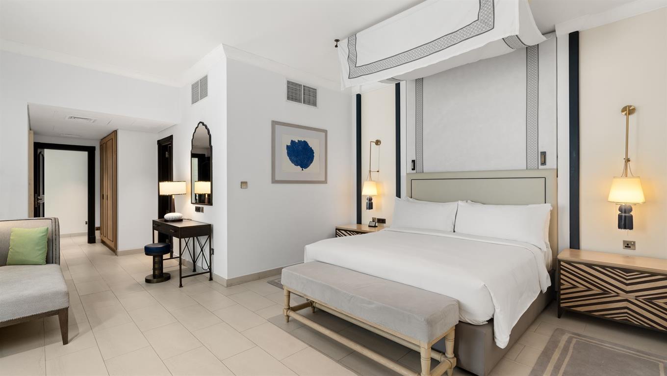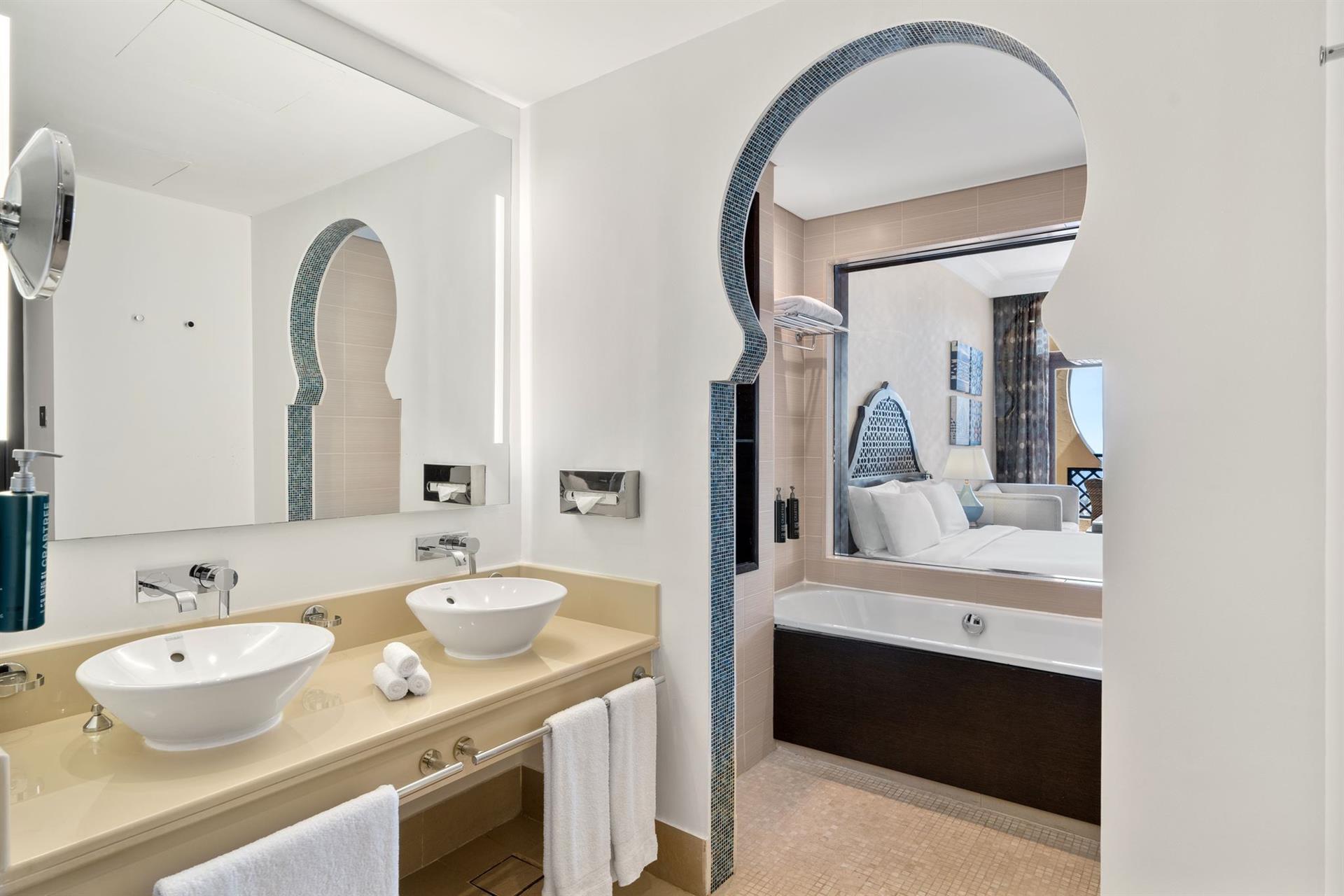 Номер: 45 кв. м, спальня, 1 кровать King-size, ванная комната, ванна и душ, балкон, вид на море.