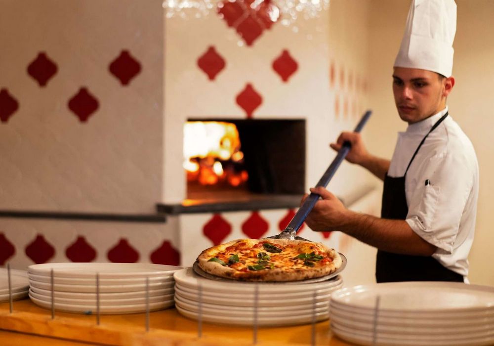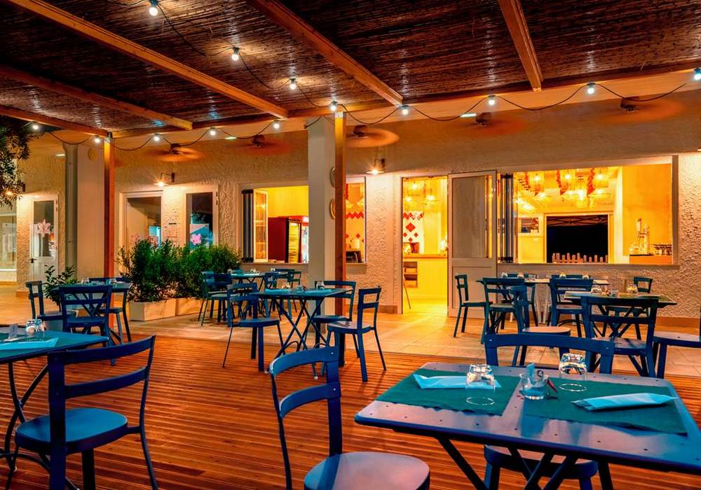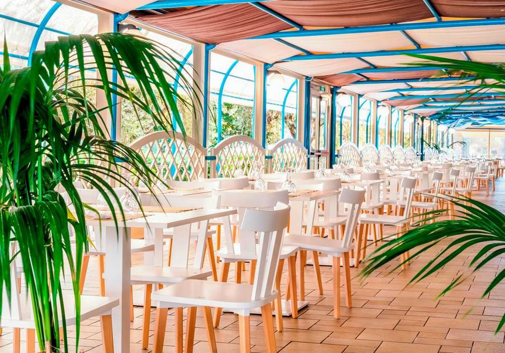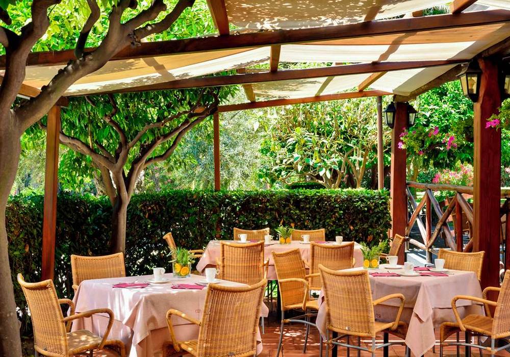4 ресторана («Oasys» — ресторан со шведским столом открытый на завтраки, обеды и ужины в главном здании отеля на террасе с видом на сад-специально для гостей отеля; «Del Parco»-ресторан со шведским столом открытый на завтраки, обеды и ужины находится в центре, с кондиционером и зимним садом — специально для гостей вилл; «Stella di Mare» — изысканый ресторан рыбной и типичной сицилийской кухни работает по меню на ужин и как шведский стол на обед, открыт только в период высокого сезона и специально для гостей по формуле Blu Naxos Formula; «Casa del Massaro» — старинный ресторан с типичной сицилийской кухней — тематические ужины при свечах по предварительному заказу, работает как шведский стол на завтрак специально для гостей по системе Blu Naxos Formula, только в период высокого сезона)