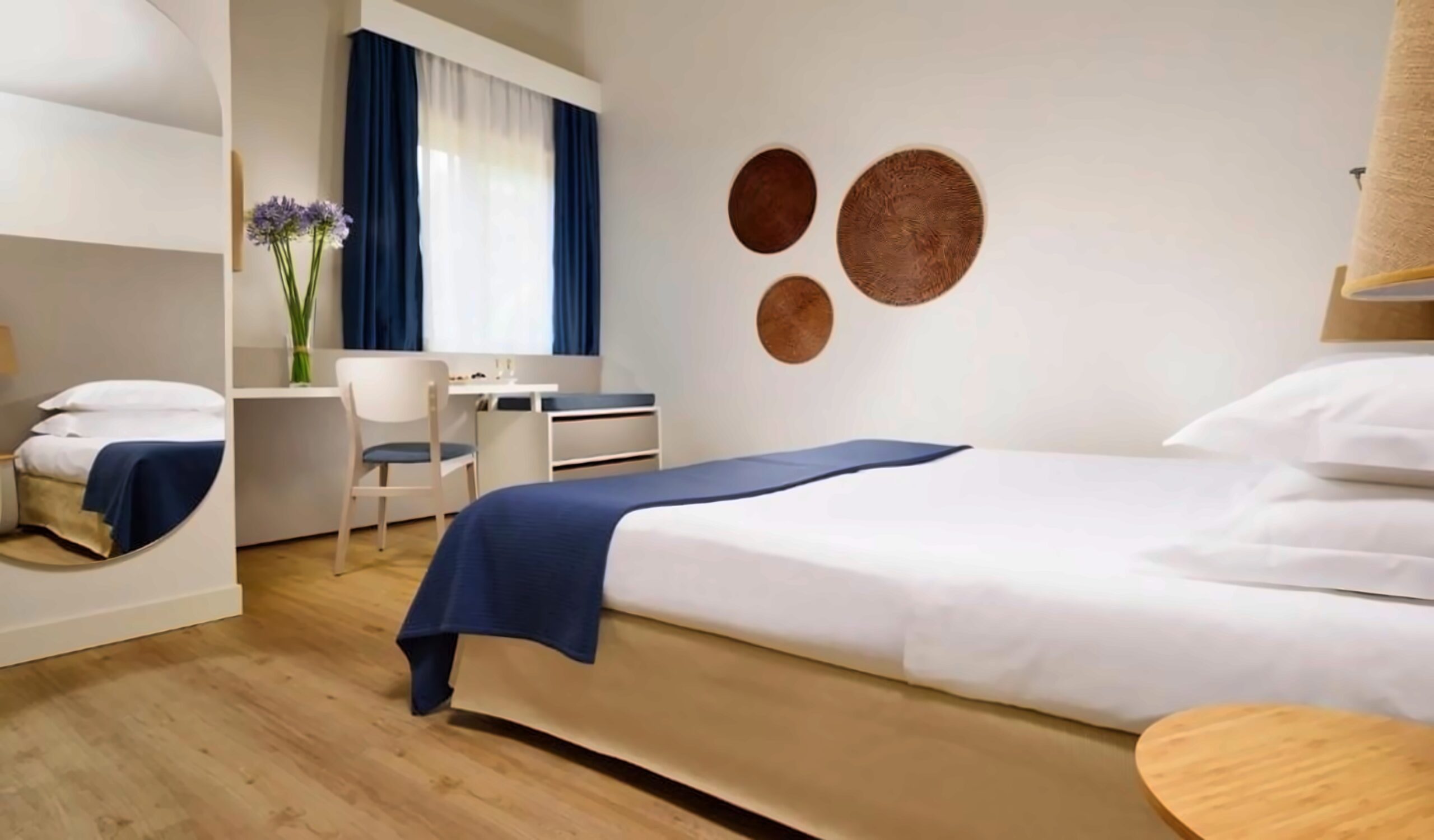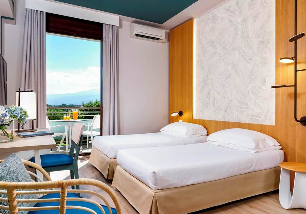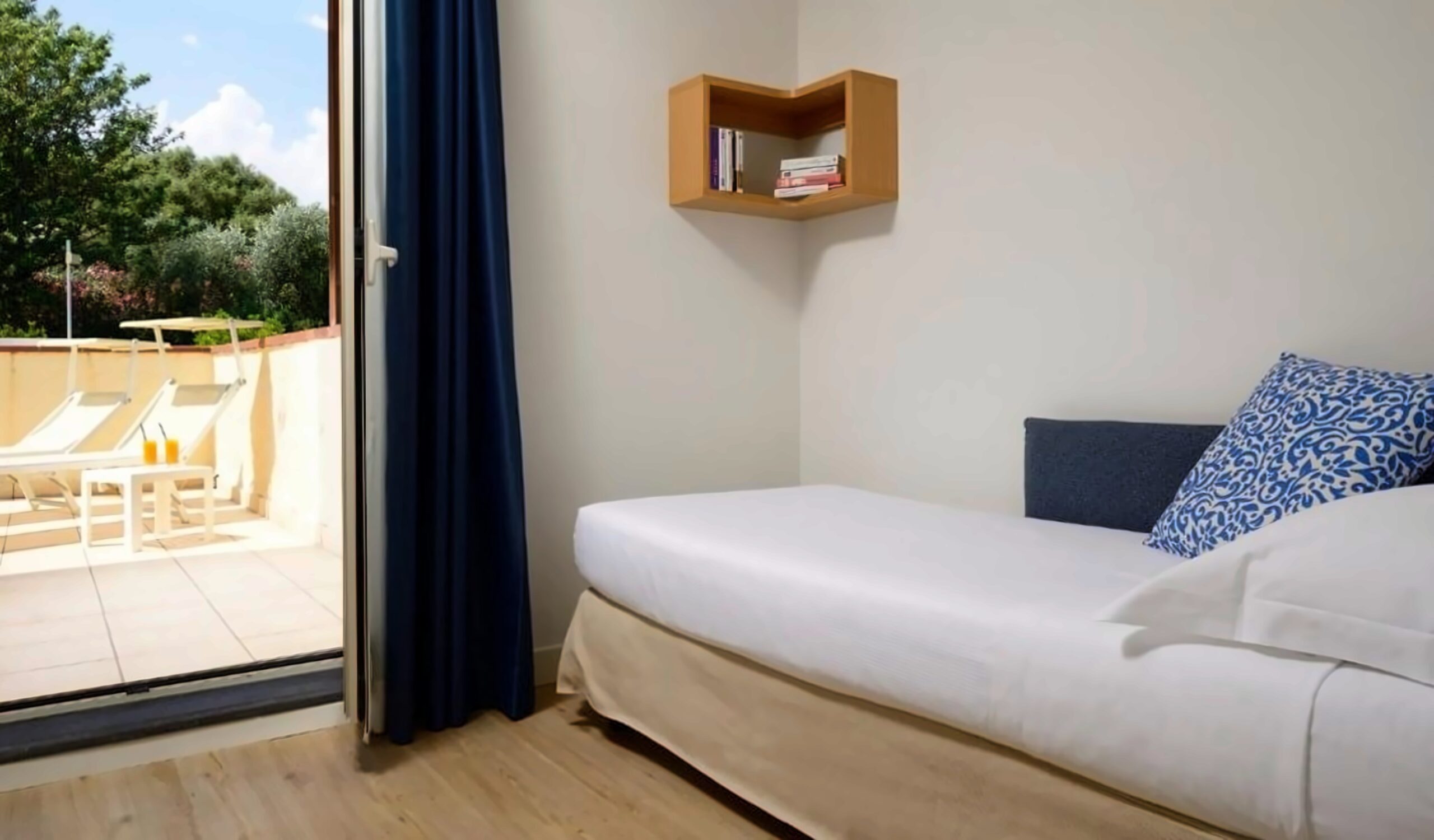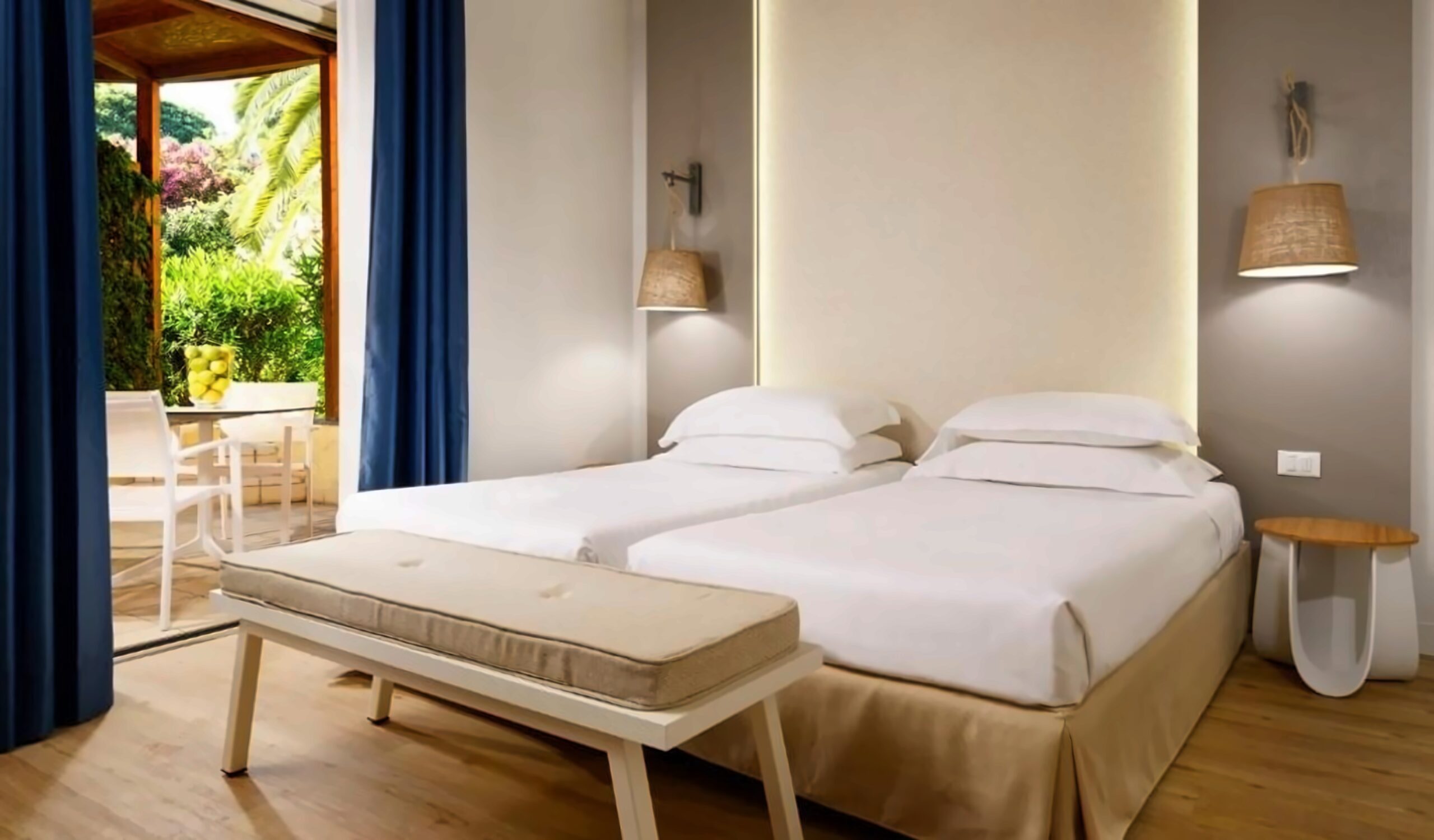 Family Room Superior Villa (ок. 32 м2, на мин/макс 2 взр.+2 реб 3-12 лет; полностью обновлены; спальня с двуспальной кроватью и детская спальня с двумя кроватями, терраса с выходом в сад или балкон. В ВИЛЛАХ ВИД НА МОРЕ НЕВОЗМОЖЕН)