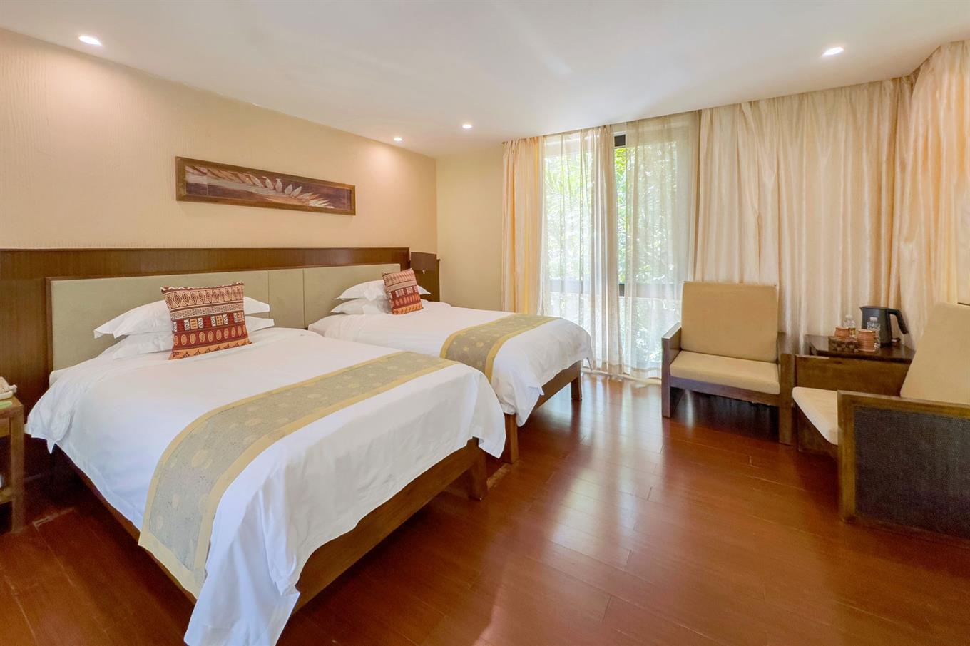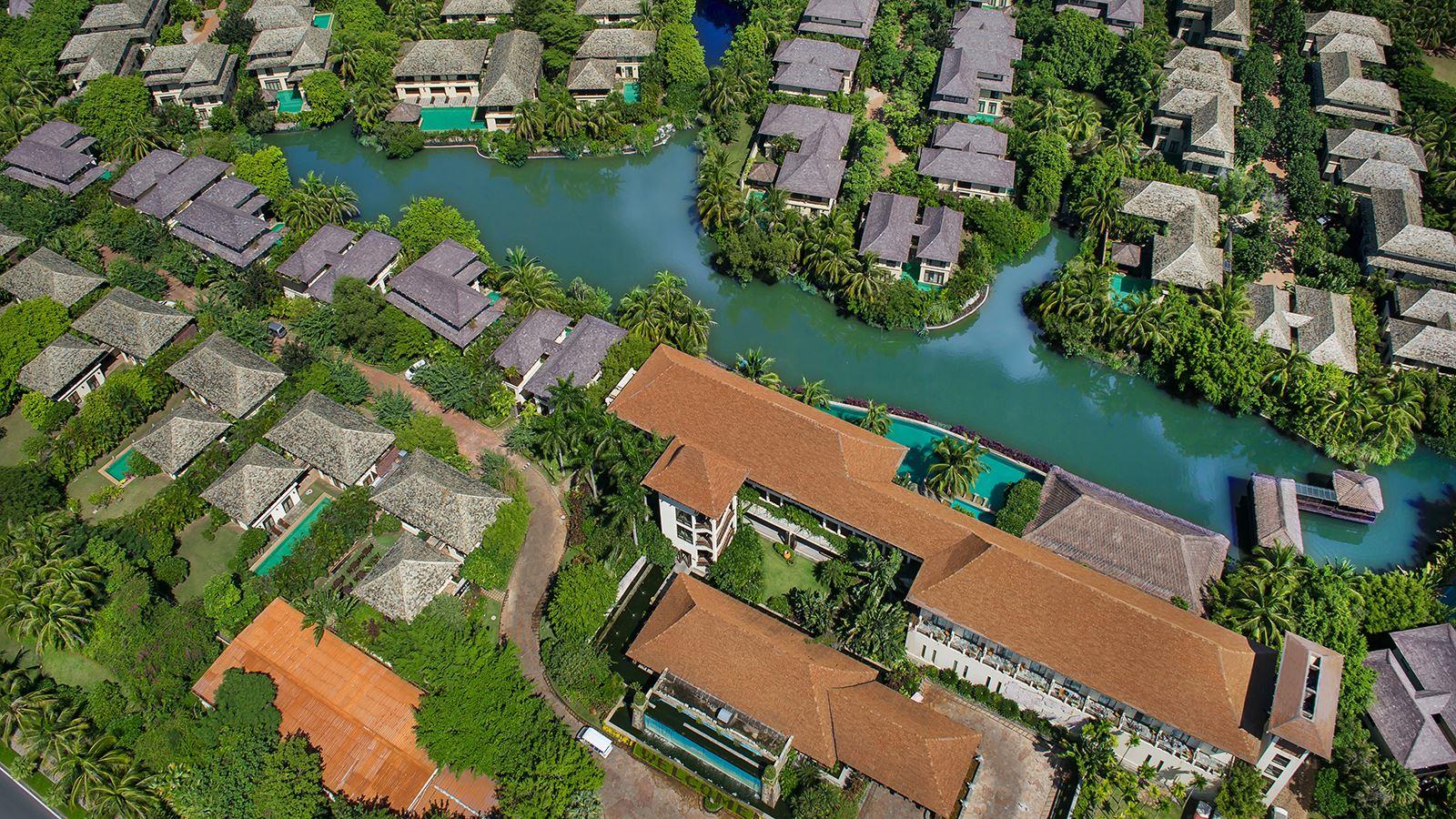 Yalong Bay Villas & Spa — это элегантный комплекс из главного здания и уютных вилл, расположенных вокруг фигурного озера.