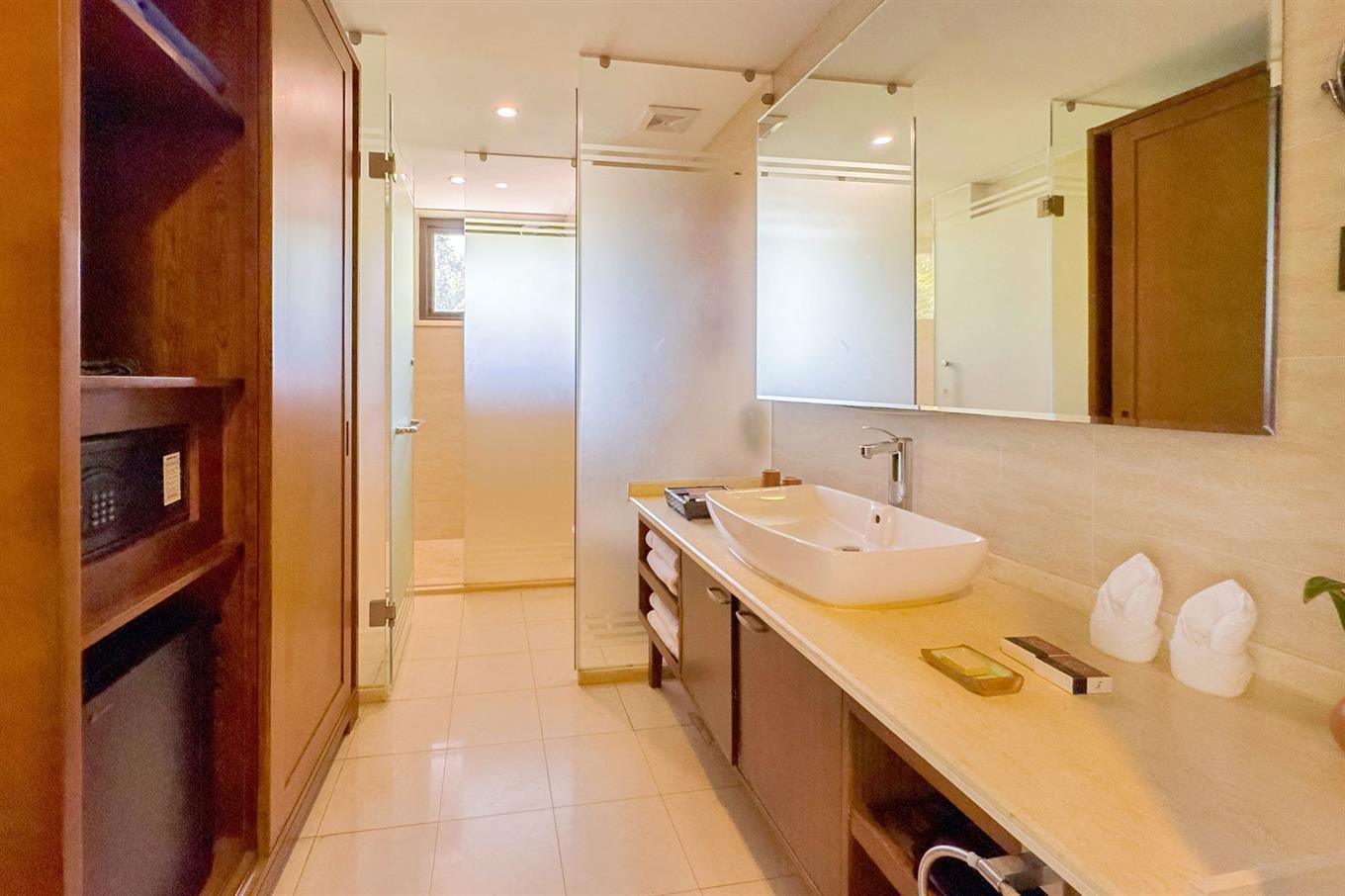 - Master King Room (номера расположенные в виллах 5 Bedrooms Villa или 6 Bedrooms Villa, 2-3 этаж зоны вилл №150-180, вид на сад вилл, двуспальная кровать, общая гостиная, без балкона, общий бассейн, макс. 3+1 чел., 55 м2)