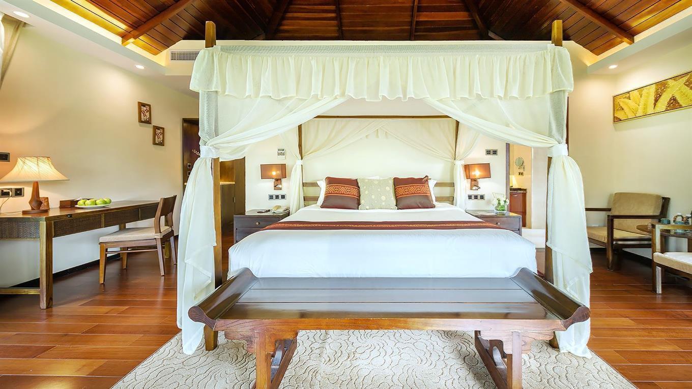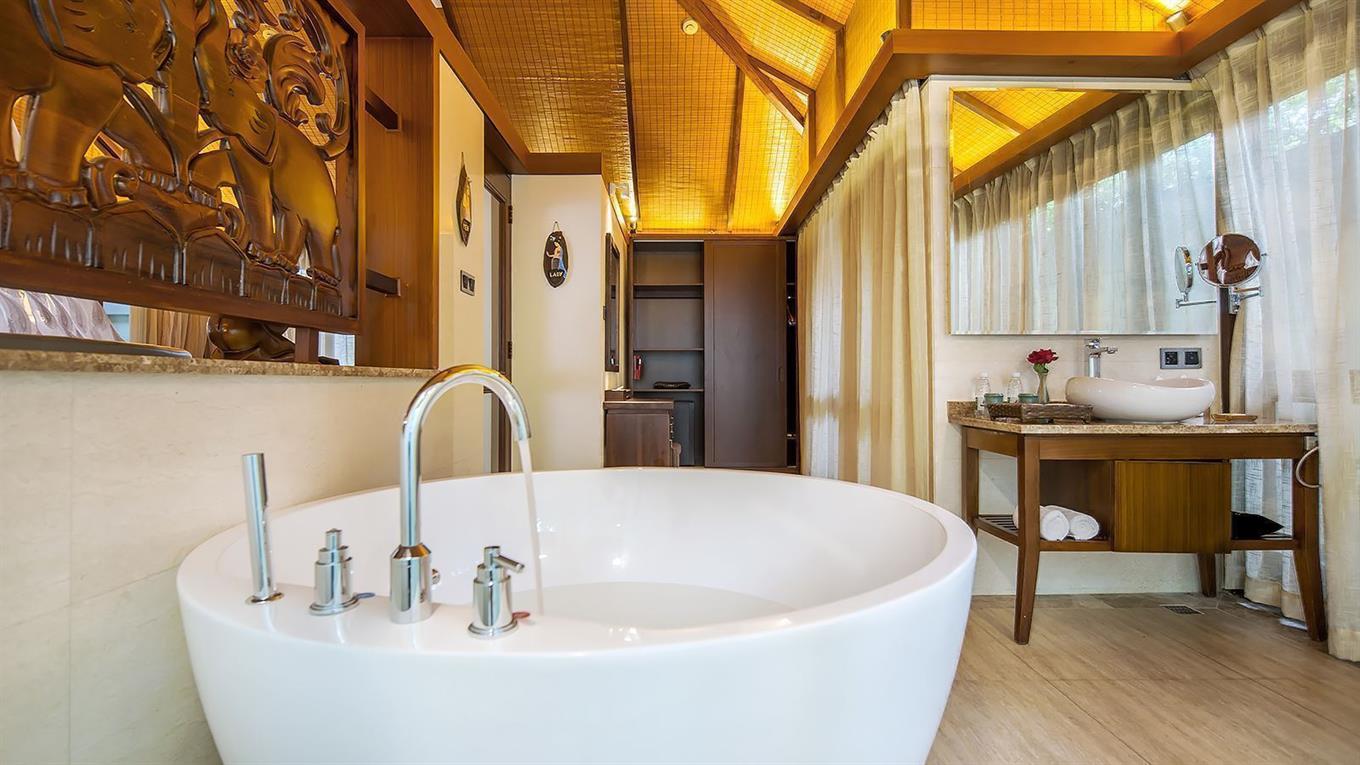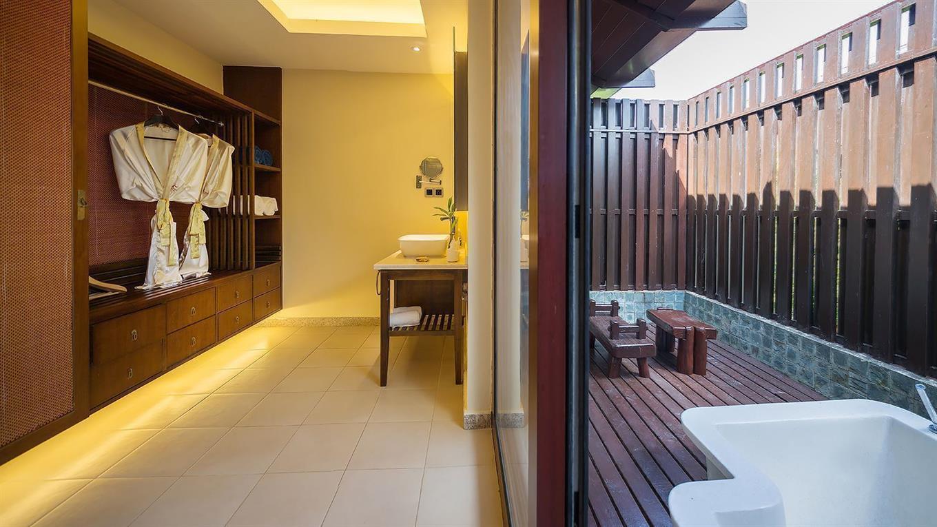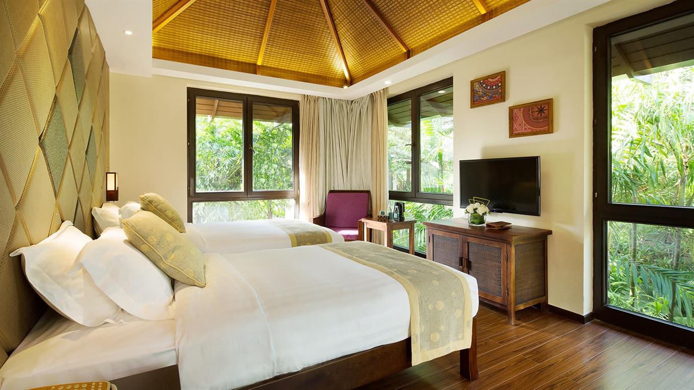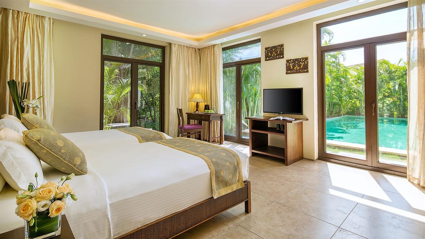 - Swimming pool villa room (вилла, 1 этаж, спальня, двуспальная или 2 односпальные кровати, ванная комната с душем и ванной, без балкона, вид на бассейн и сад. Донительное место не предоставляется. Размеры кроватей: двуспальная – 180х200, односпальная – 120х200. Особенности: бассейн для всех номеров, расположенных в вилле (площадь номера — 32 м²)