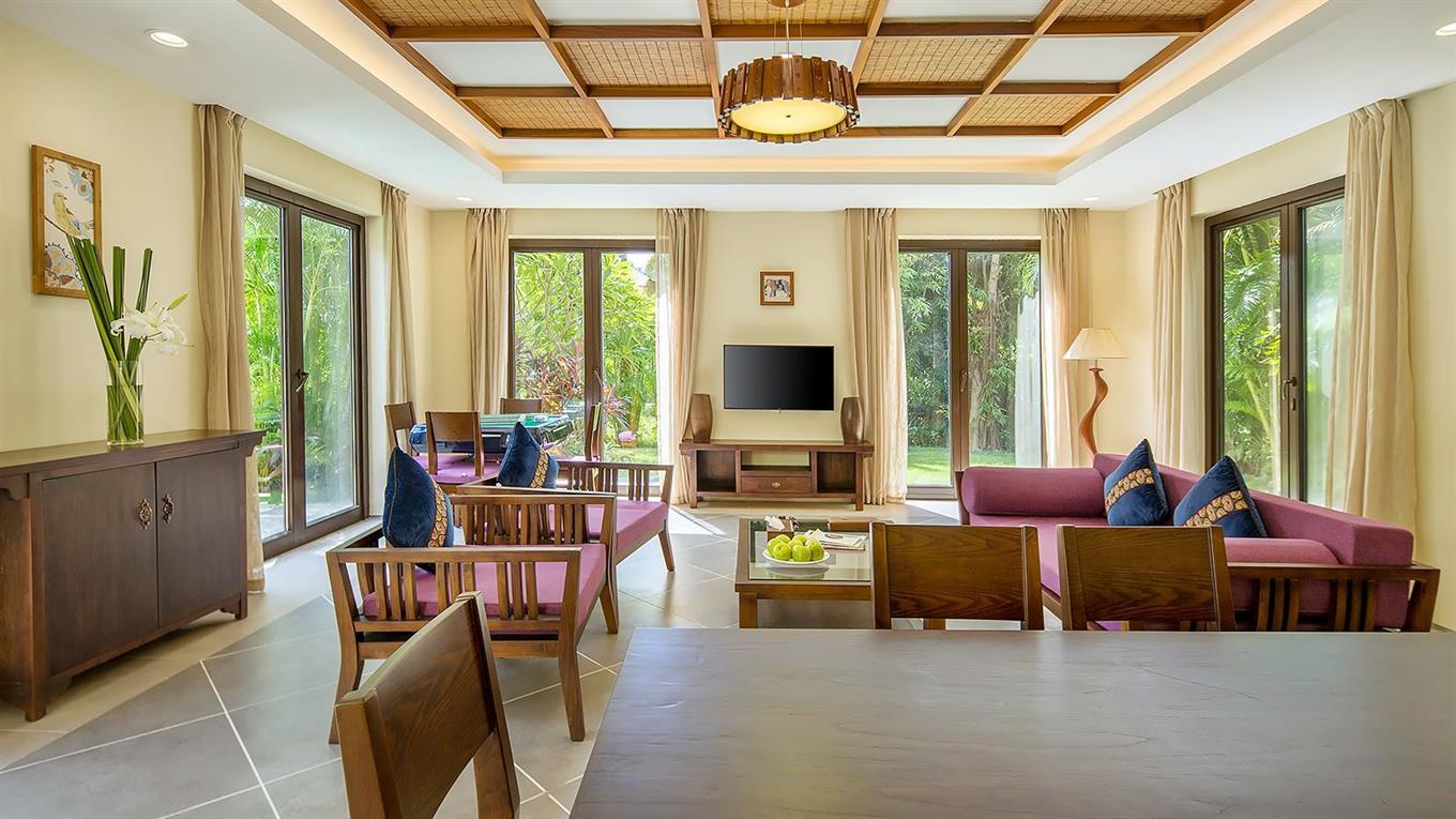 - Deluxe 2 Bedrooms Villa (двухэтажная вилла, номера расположенные в виллах Deluxe 3 Bedrooms Villa (закрывается одна комната), вид на сад, 2 спальни, двуспальная и 2 односпальные кровати, гостиная и обеденная зона, оборудованная кухня, собственный бассейн, сад, макс. 5+1 чел., 320 м2)