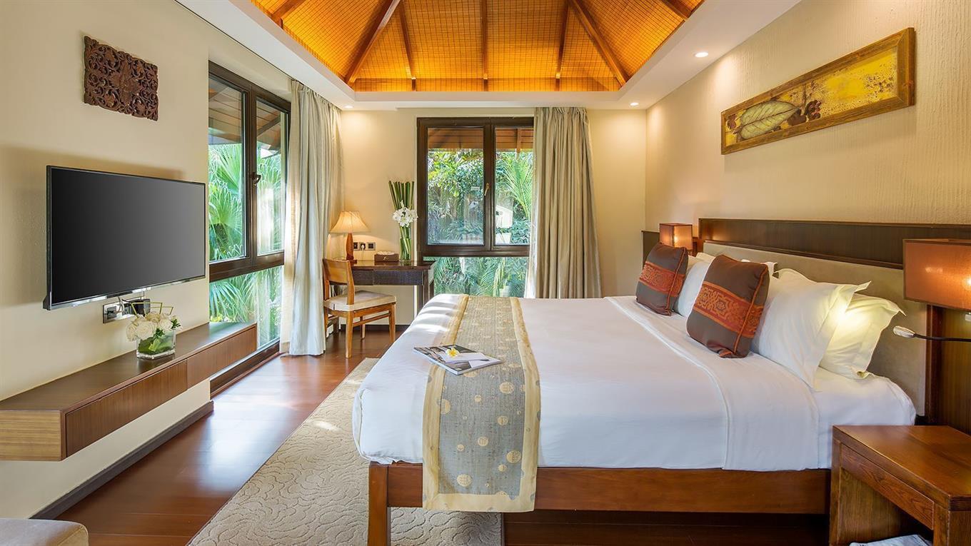 - Deluxe Villa Room (номера расположенные в виллах 5 Bedrooms Villa или 6 Bedrooms Villa, 1-2 этаж зоны вилл №150-180, вид на сад вилл, двуспальная или 2 односпальные кровати, без балкона, общая гостиная, общий бассейн, макс. 3+1 чел., 33-38 м2);